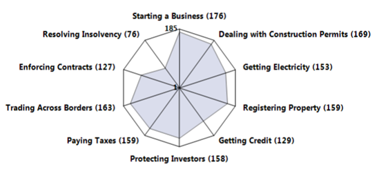 Figure 2: How Côte d’Ivoire ranks on Doing Business topics. From: World Bank. (2013). Economy Profile: Côte d’Ivoire. In Doing Business 2013 (10th ed.),p. 8. Retrieved from: